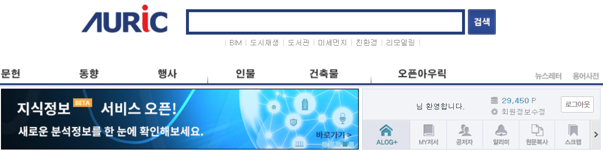아우릭은 건축 논문을 볼 수 있는 사이트입니다. 기존의 논문은 물론이고 신규 논문까지 꾸준히 업데이트 되니 이용하시면 정말 좋을 것입니다. 기본적으로 포인트제로 운영됩니다. 논문에 따라 50p, 100p를 지불하면 볼 수 있습니다. 포인트제라고 걱정하지 마십시오. 하루에 한 번, 로그인 할 때 500p를 무료로 지급해줍니다. 유비무환이라는 말이 있듯이, 평소에 꾸준히 로그인을 하여 포인트를 모아두면 추후에 과제를 위해 논문을 봐야 할 일이 생겼을 때 포인트 걱정이 없을 것입니다.