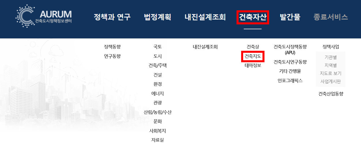 아우름은 건축도시정책정보센터입니다. 이 사이트에서는 우리나라 건축 정책과 연구를 살펴볼 수 있습니다. 또한 건축상을 탄 건축물을 알 수 있어 건축답사를 갈 만한 곳을 찾는 데에도 매우 유용합니다.